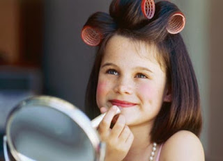 Fui, recentemente, a um salão de festas, num evento particular voltado ao público infantil e vi uma menina que me chamou a atenção: ele daveria ter a idade de meu Pedro e estava mais maquiada do que eu! Batom vermelho, blush...fiquei perturbada com a imagem mas deixei prá lá; afinal, tenho 02 meninos e não menina.